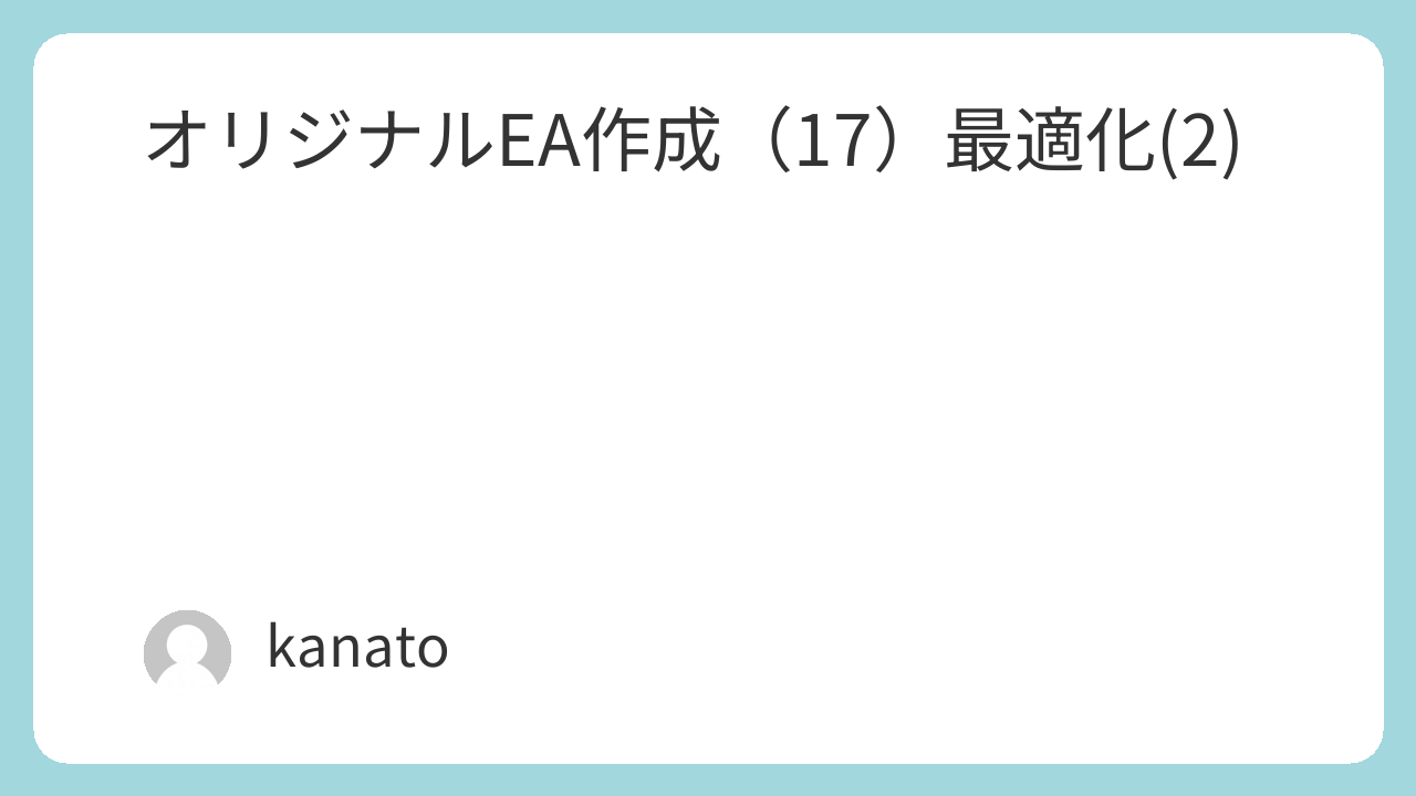 オリジナルEA作成(17)最適化(2)