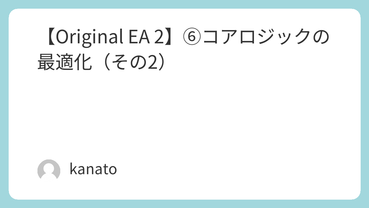 【Original EA 2】⑥コアロジックの最適化(その2)