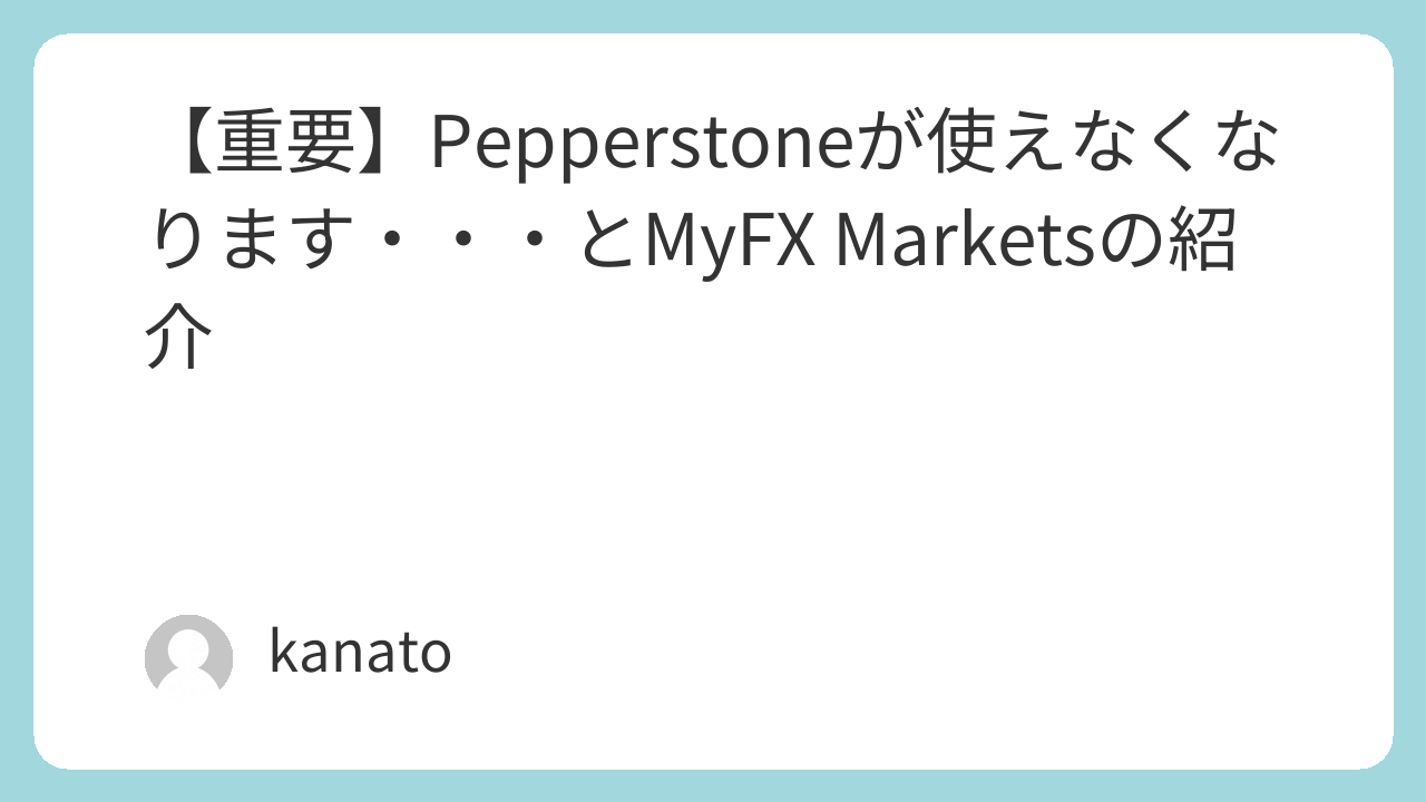 【重要】Pepperstoneが使えなくなります・・・とMyFX Marketsの紹介