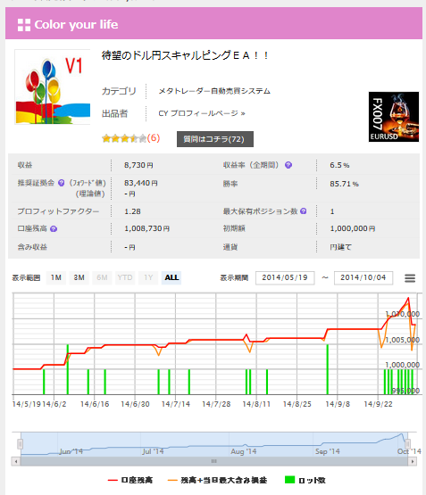 稼働を開始したEA『Color your life V1』をご紹介したいと思います.