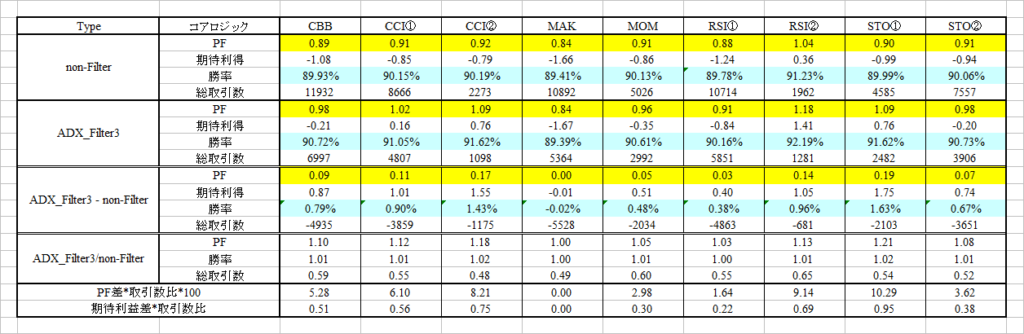 前回,前々回と比較して,コアロジックによって結果にコントラストがあり,面白い結果になりました.改善がみられたものはADXフィルター①,②に組み合わせても面白いかもしれませんね.