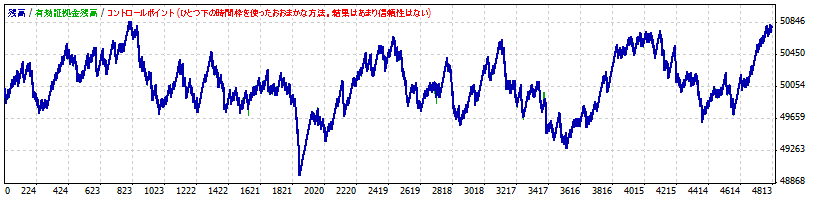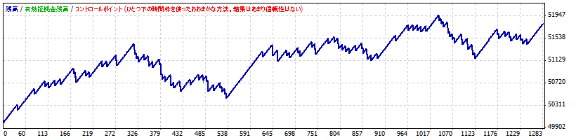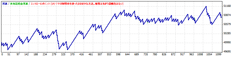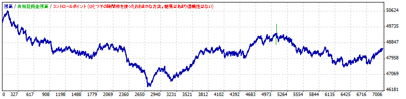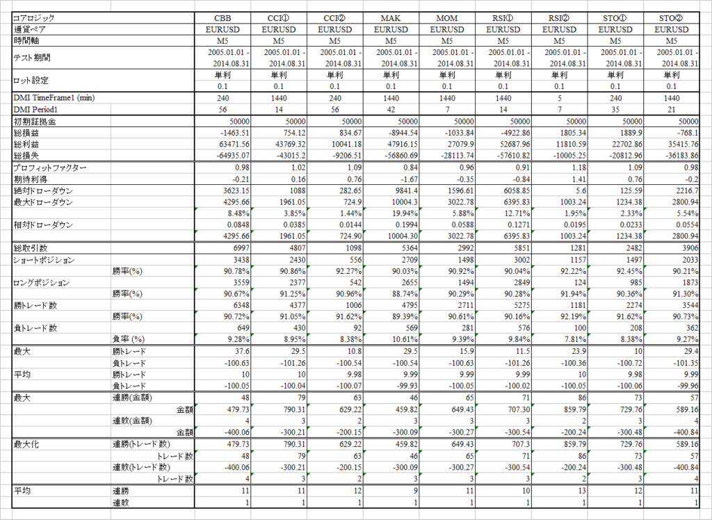 なお,前回同様にパラメーターはできるだけ普通の数値で,売買回数が1000回以上で1トレードでの獲得利益が大きい(損失が少ない)ものを独断と偏見で選定します.