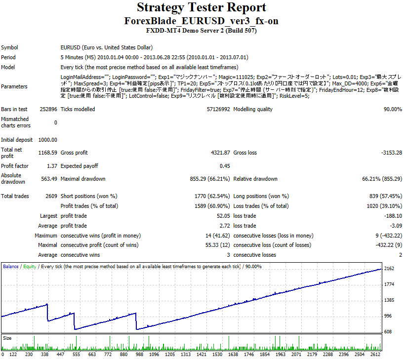 トレード回数は2600回程度,PFは1.4弱でした.