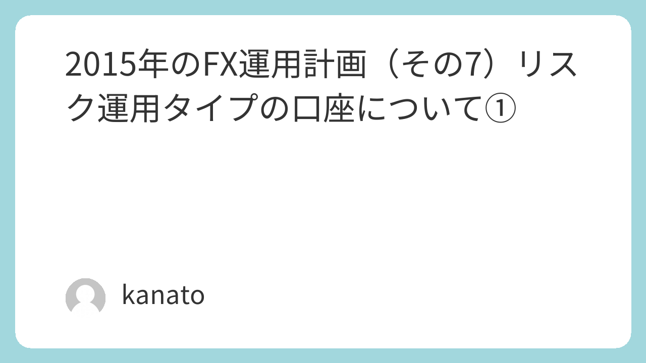 2015年のFX運用計画(その7)リスク運用タイプの口座について①