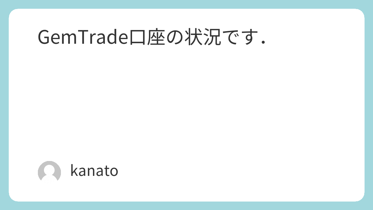 さて,本日はGemTrade口座の現在の状況について,お知らせします.