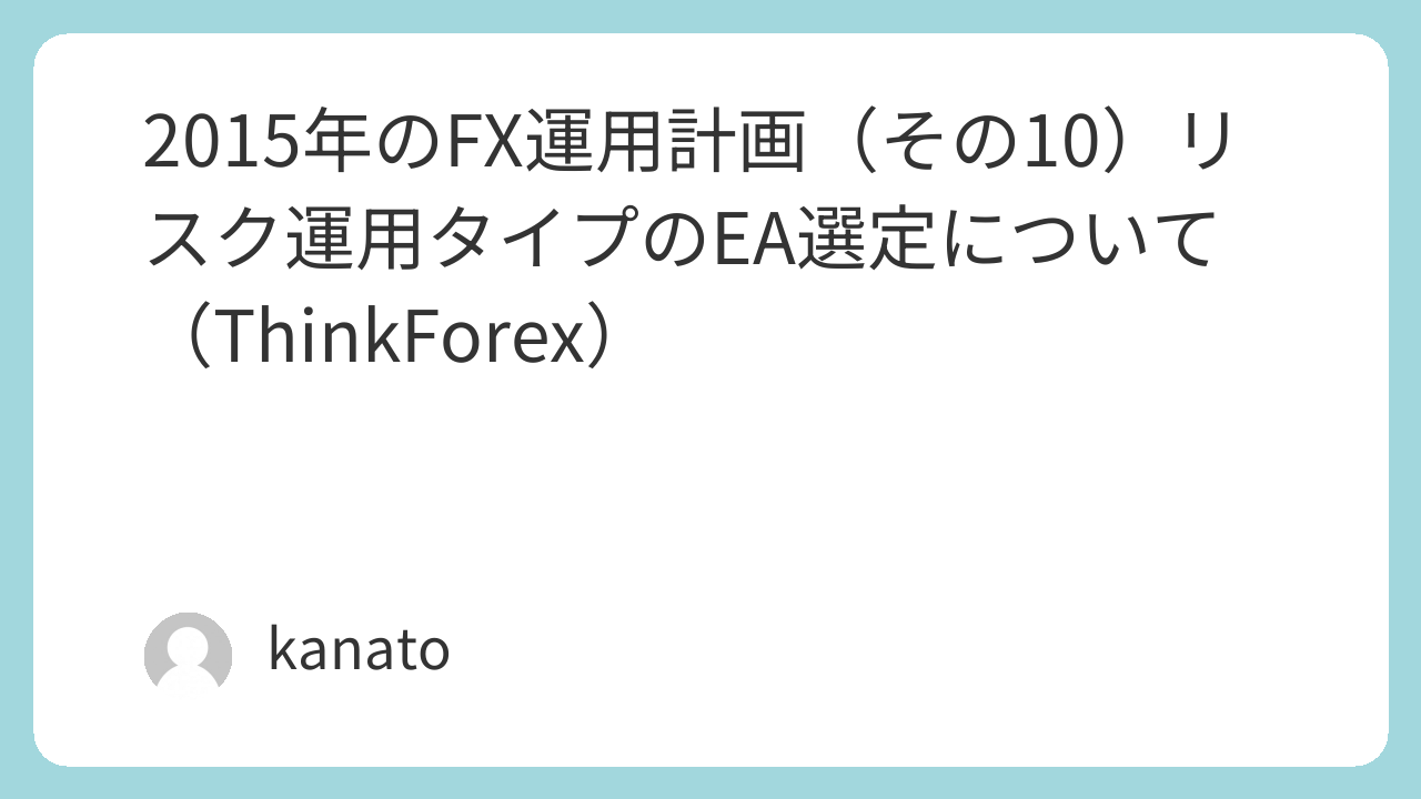 2015年のFX運用計画(その10)リスク運用タイプのEA選定について(ThinkForex)