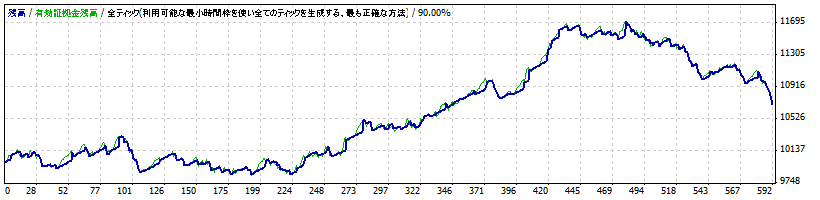 通常のスプレッド(1.4~1.6pips)やECN口座を使う前提での低スプレッド(0.1pips~)ではすべて右肩上がりの損益曲線になっています.