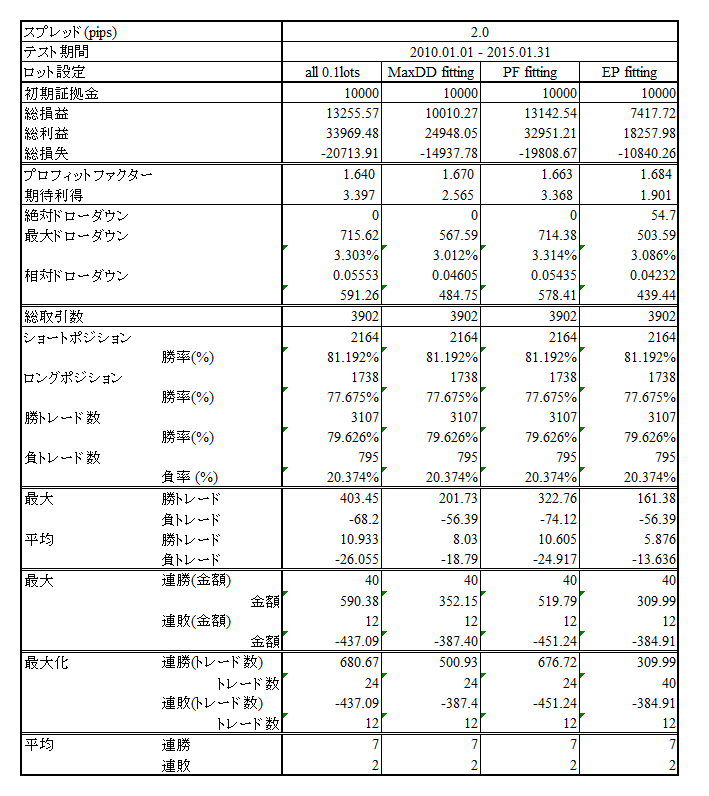 最後に期待利益(EP)が同じくらいになるようにロットを調整してみました.