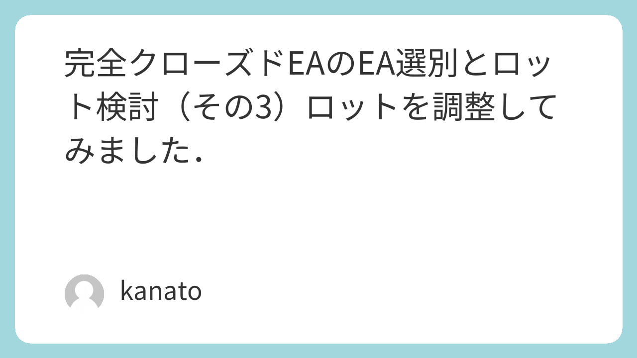完全クローズドEAのEA選別とロット検討(その3)ロットを調整してみました.