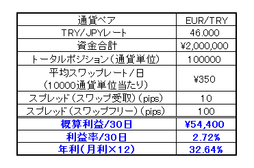 私はEUR/TRYをメインでスワップアービトラージをしているのですが,かなり利益が圧迫されてしまいますね.