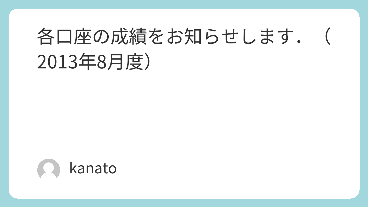 各口座の成績をお知らせします.(2013年8月度)