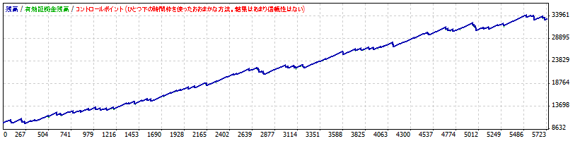 初めの状態がこんな損益曲線ですが,所々(特に最後の辺り)に目立ったドローダウンがありますので,何とかそれを解消できないかと言う事で検討してみました.