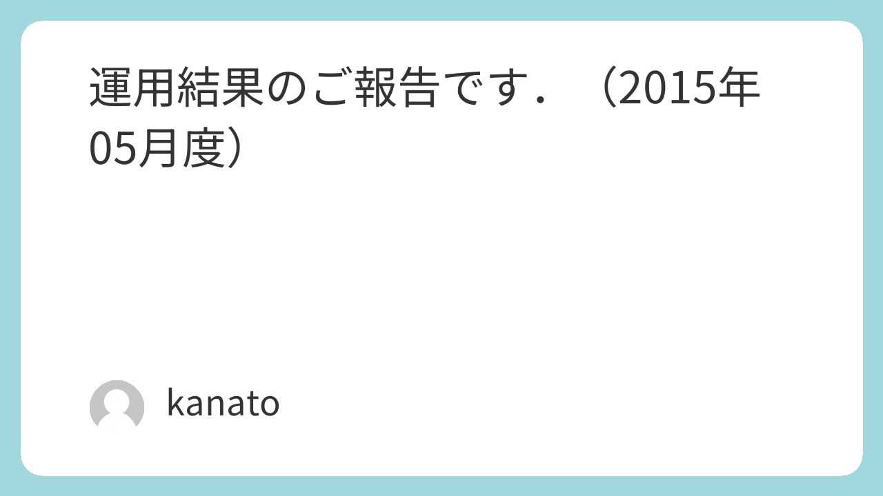 さて,今回は2015年05月度(2015/05/04~2015/05/30)の運用結果をご紹介します.