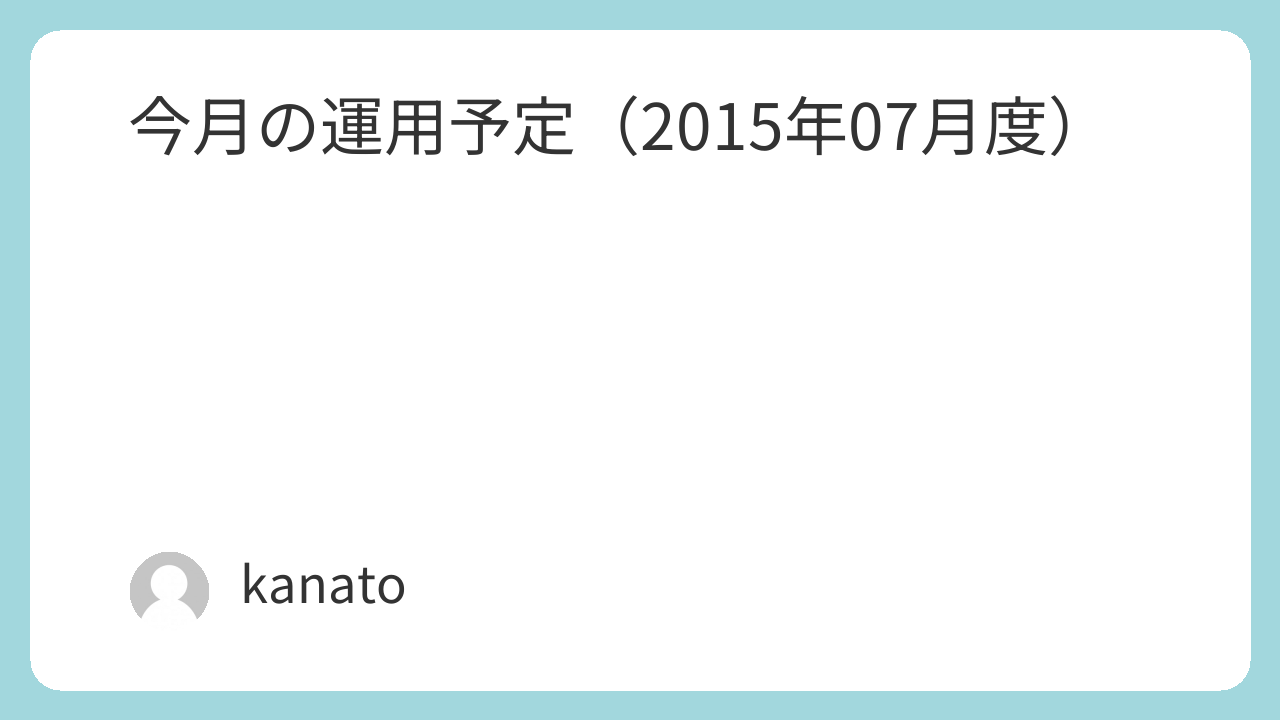 さて,今回は2015年07月度(2015/06/29~2015/08/01)の運用予定を書いてみたいと思います.
