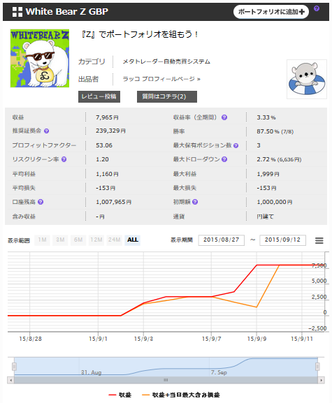 すでに販売中のWhite Bear Z USDJPY,EURJPYとのポートフォリオでリスク低減.