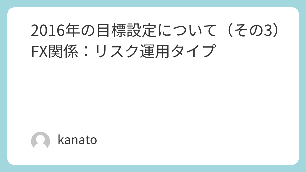 2016年の目標設定について(その3)FX関係:リスク運用タイプ