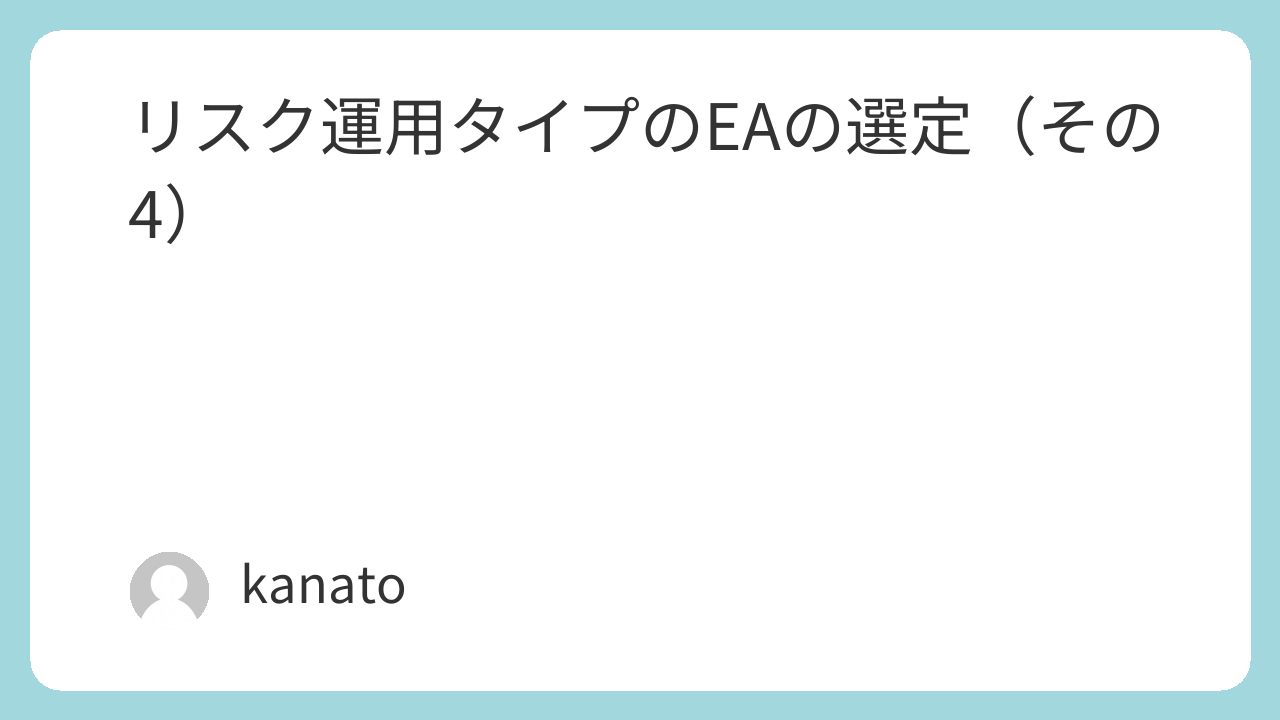さて,今回はリスク運用タイプのEAの選定(その4)ということで,選定したEAをご紹介したいと思います.