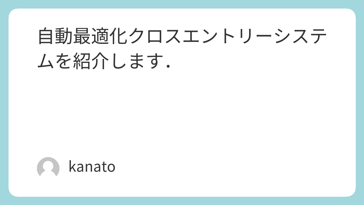 自動最適化クロスエントリーシステムを紹介したいと思います..