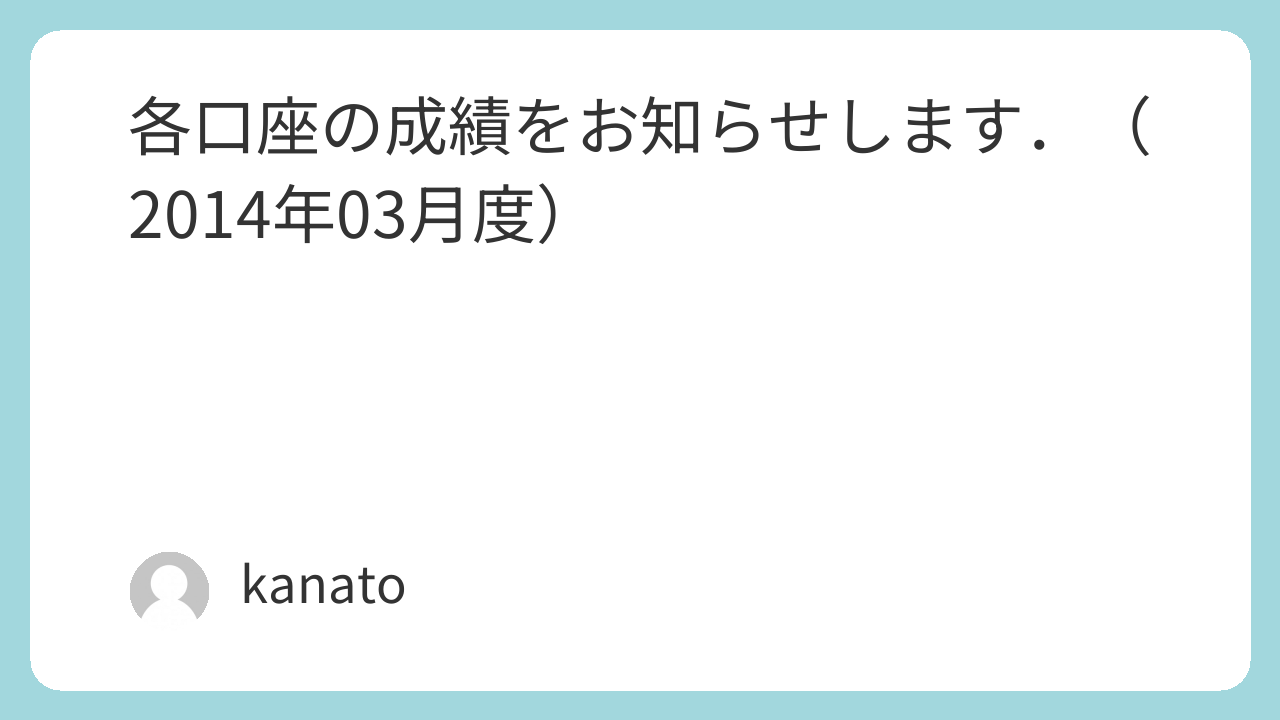 各口座の成績をお知らせします.(2014年03月度)