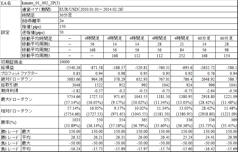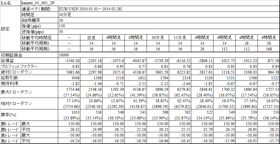 どの結果も14本移動平均線のみの時と大差ない結果であり,