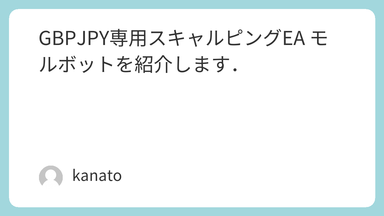 さて,本日は最近気になっているEA「モルボット」をご紹介したいと思います.