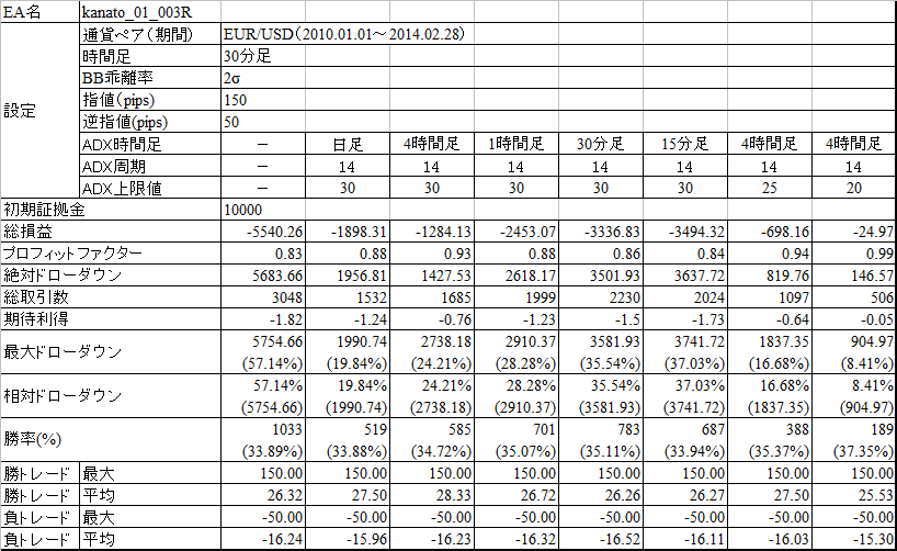 その結果,ADXがある水準以下である場合のフィルターが有望であることがわかりました.