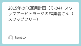 運用結果報告 2015年のFX運用計画(その4)スワップアービトラージのFX業者さん(スワップフリー) メリークリスマス!!kanatoです.特になにかあるわけではないのですが・・・さて,今回は私が使わせていただくスワップアービトラージのFX業者さんをご紹介します.まず,スワップフリーのFX業者さんですが,「ダイナミックトレード」さんを使わせ... 2014.12.25 運用結果報告