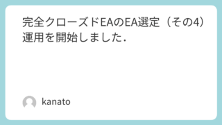 EA紹介 完全クローズドEAのEA選定(その1)バックテスト・スキャルピング編 こんにちは,kanatoです.最近,こちらのブログがだいぶ疎かになってしまいました.すみません.色々と新しいことをやりたいと思いつつも,本業の仕事に忙殺されてしまい,あまり進んでいません・・・(涙).さて,本日は私のリスク運用タイプの口座の... 2016.02.14 EA紹介