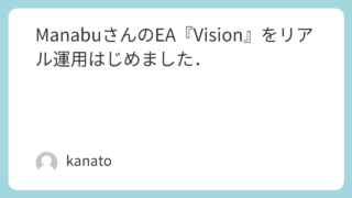 EA紹介 【Manabuさんの新EA】Visionのご紹介(その2) こんばんは,kanatoです.さて,本日はManabuさんの新EA「Vision」のご紹介 第2弾です.前回の記事も併せてご覧ください.→こちらようやくバックテストが終わりましたので,ご紹介したいと思います.(そうこうしているうちに早くもバ... 2015.01.25 EA紹介